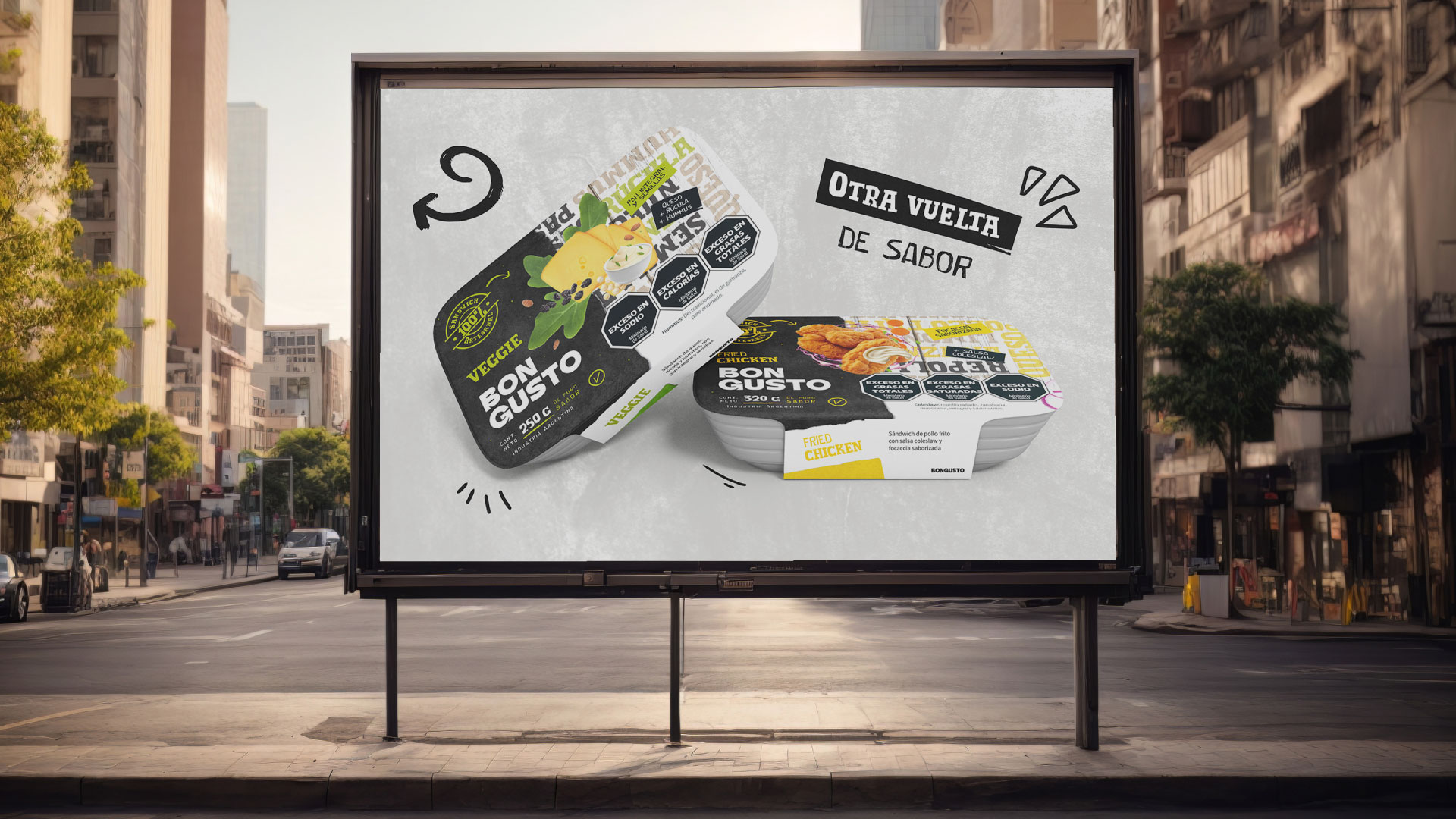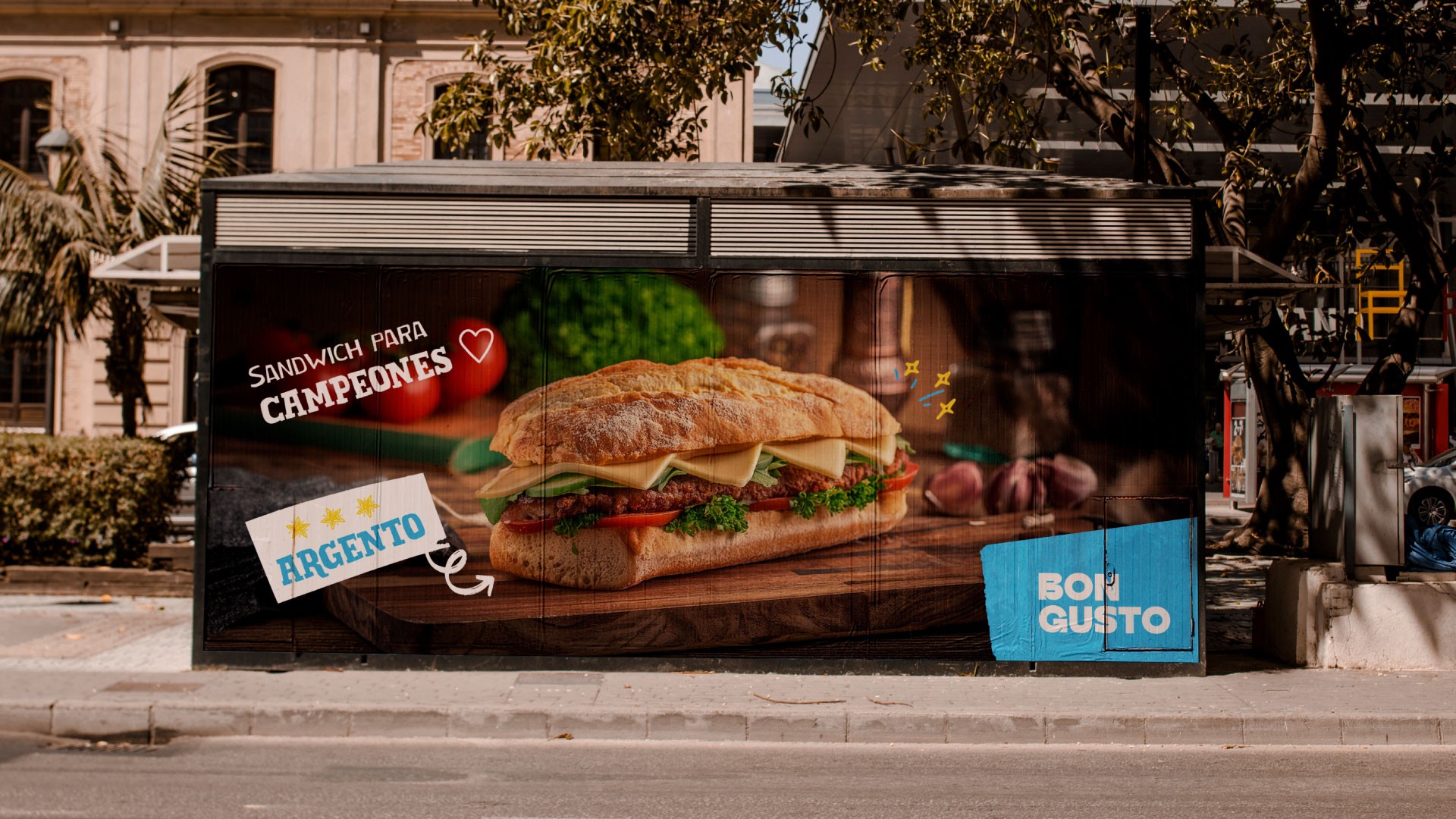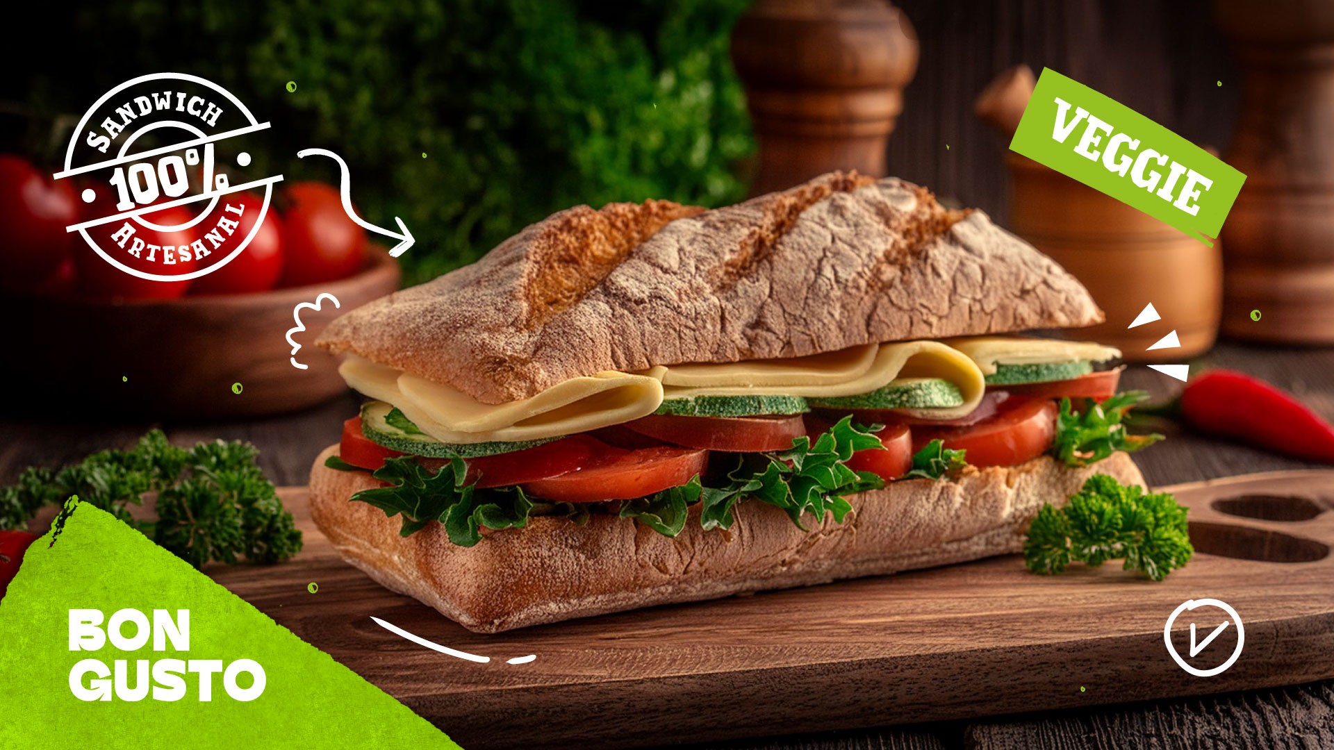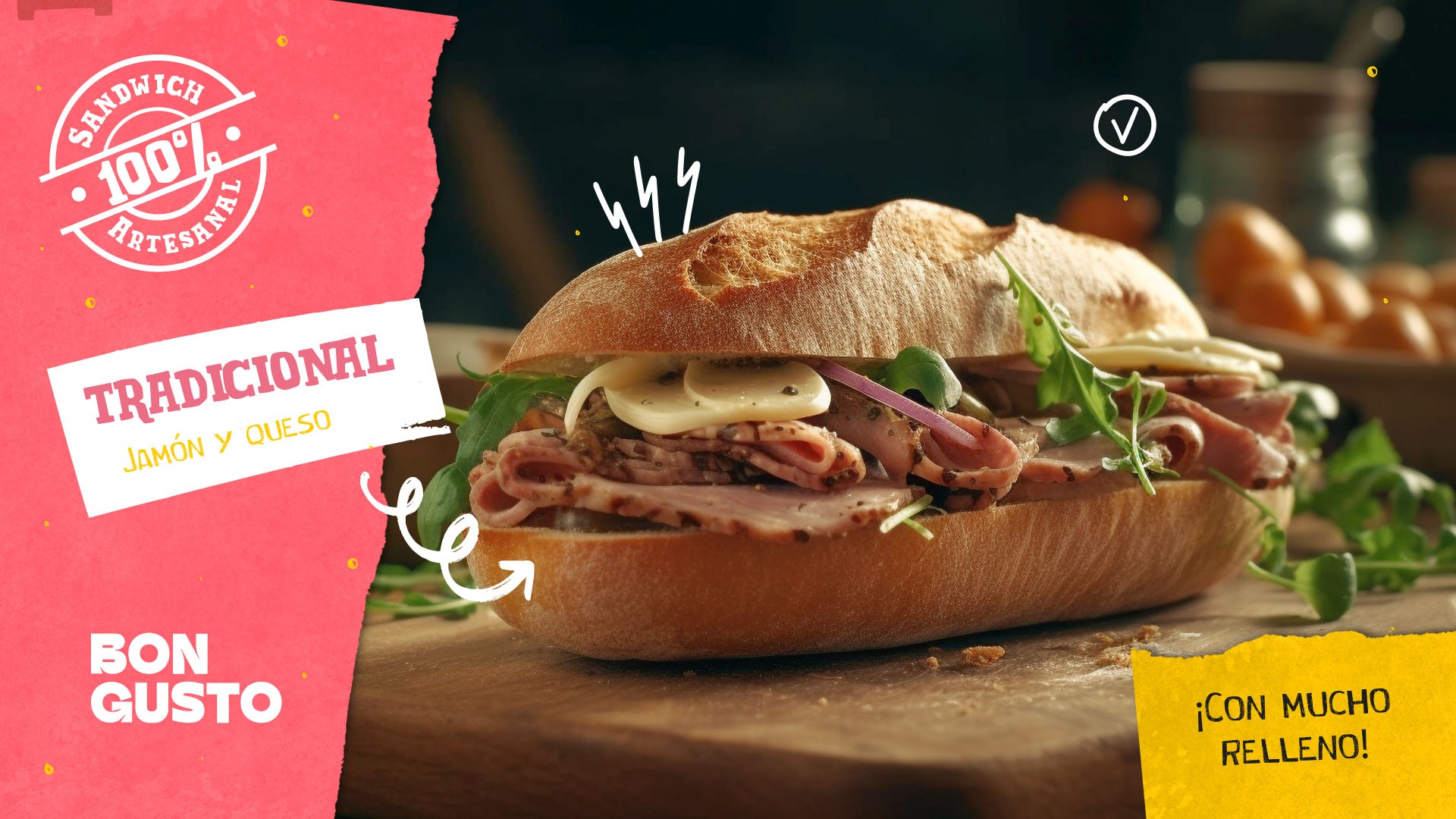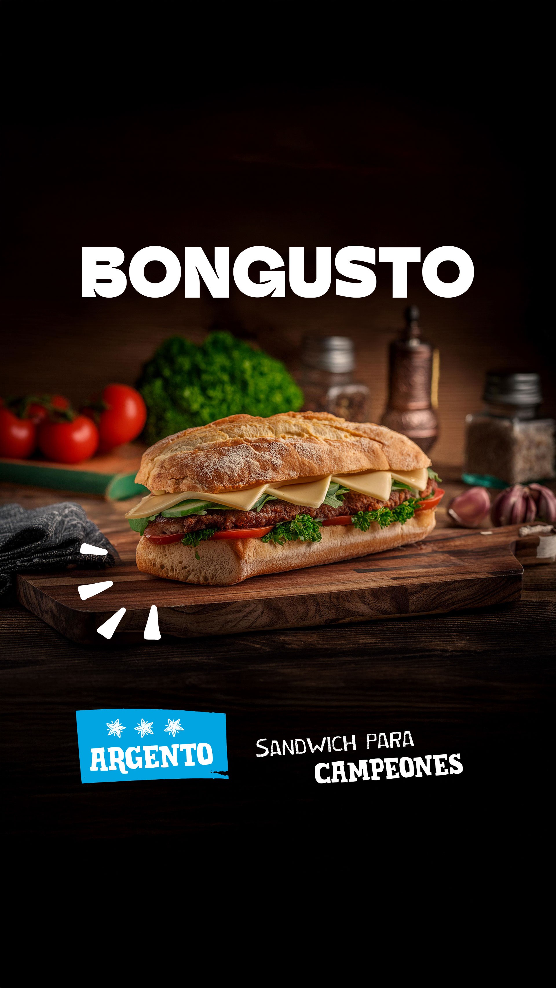 Para crear el universo visual nos basamos en dos aspectos fundamentales del producto: los ingredientes gourmet y la preparación artesanal de los sándwiches.