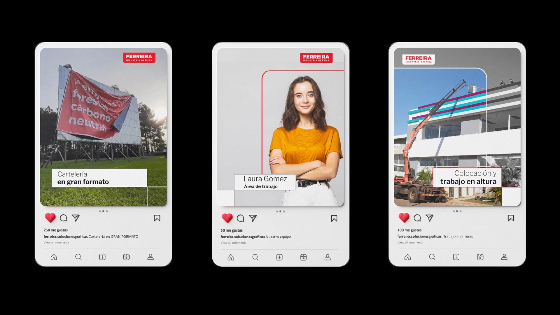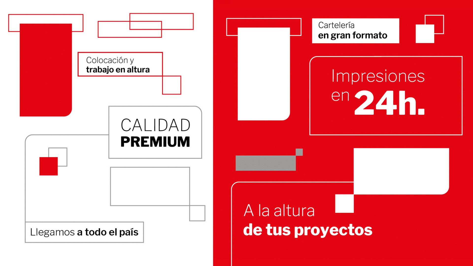 Por otro lado, establecimos un claim de marca con un doble significado que los representaba: “A la altura de tus proyectos”. Hace referencia a una altura alcanzada por la maquinaria que coloca carteles a gran cantidad de metros; y a una altura que habla del excelente nivel de los trabajos realizados por la empresa.