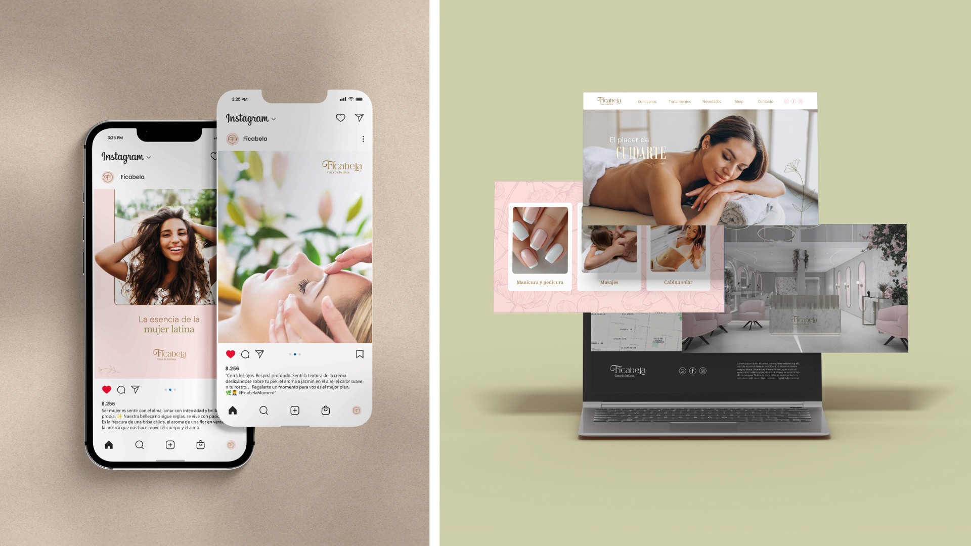 En Ficabela desarrollamos una marca pensada para el disfrute, el cuidado y el amor propio. Comenzamos con el naming, creando un nombre delicado y sofisticado que celebra la belleza femenina. Construimos una identidad visual y discursiva cálida, sensual y elegante, alineada con una experiencia sensorial completa, para la cual propusimos acciones para el local. Además, diseñamos piezas para redes que traducen esa experiencia en imágenes y textos que invitan a frenar, mimarse y decir sin culpa: “este momento es para mí”.