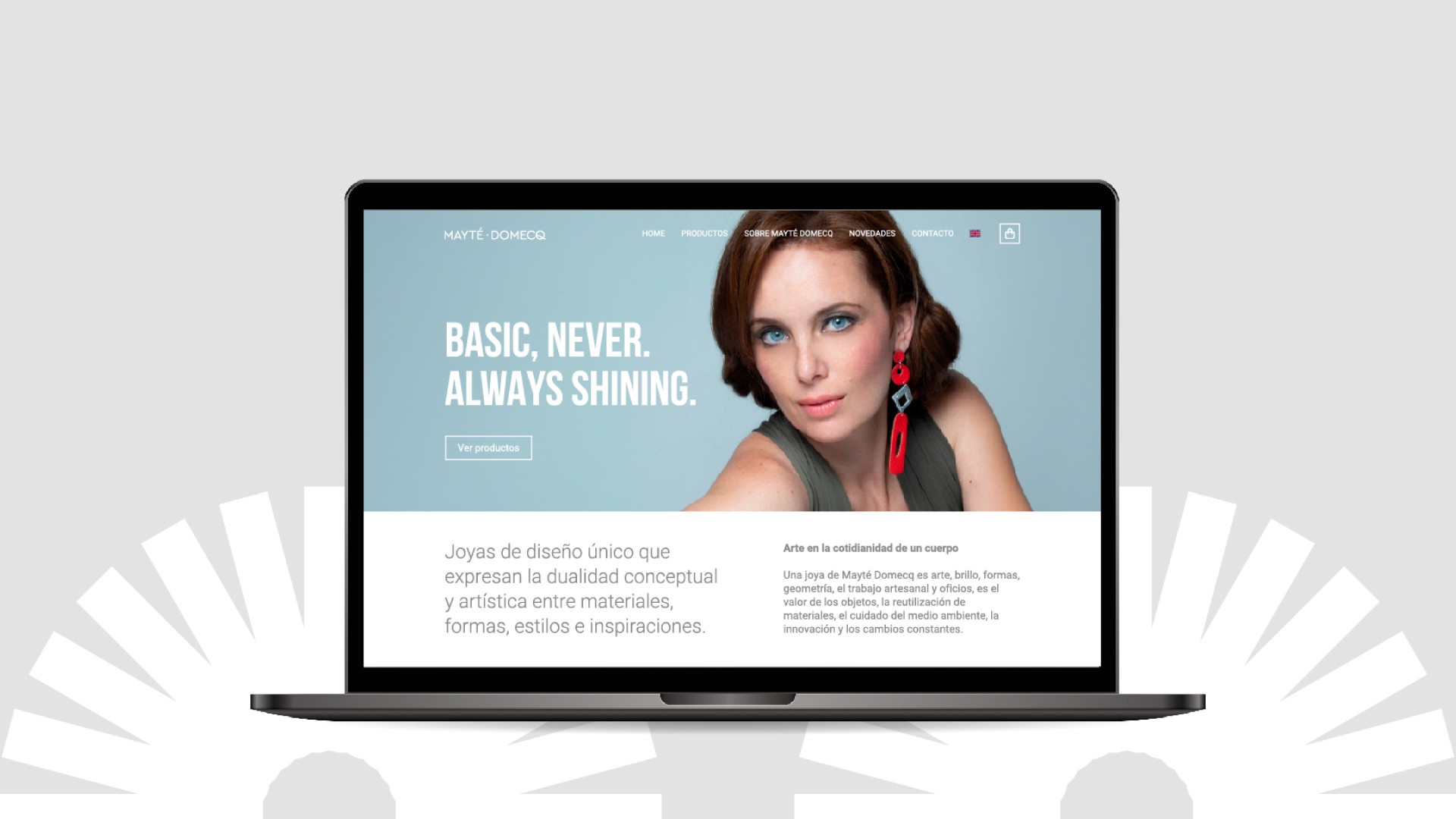 Una joya de Mayté es arte, brillo, formas, geometría, es trabajo artesanal y oficios, es el valor de los objetos. Mayté utiliza un enfoque geométrico, explora diversas técnicas para evolucionar hacia formas orgánicas. Los ritmos visuales, las líneas y la repetición se convierten en herramientas clave para esta transformación. Al mismo tiempo, el uso consciente del color y sus combinaciones añade profundidad y significado a estas formas geométricas, creando una experiencia visual rica y armoniosa. Esta cuidadosa combinación se traduce en una identidad visualmente reconocible, propia y original, que refleja la esencia única que hace al trabajo de Mayte Domecq. El logotipo trabajamos con una fuente geométrica, para el sistema visual tomamos las formas y los ritmos visuales de sus joyas para generar patrones y tramas tan distintivas como su producción.