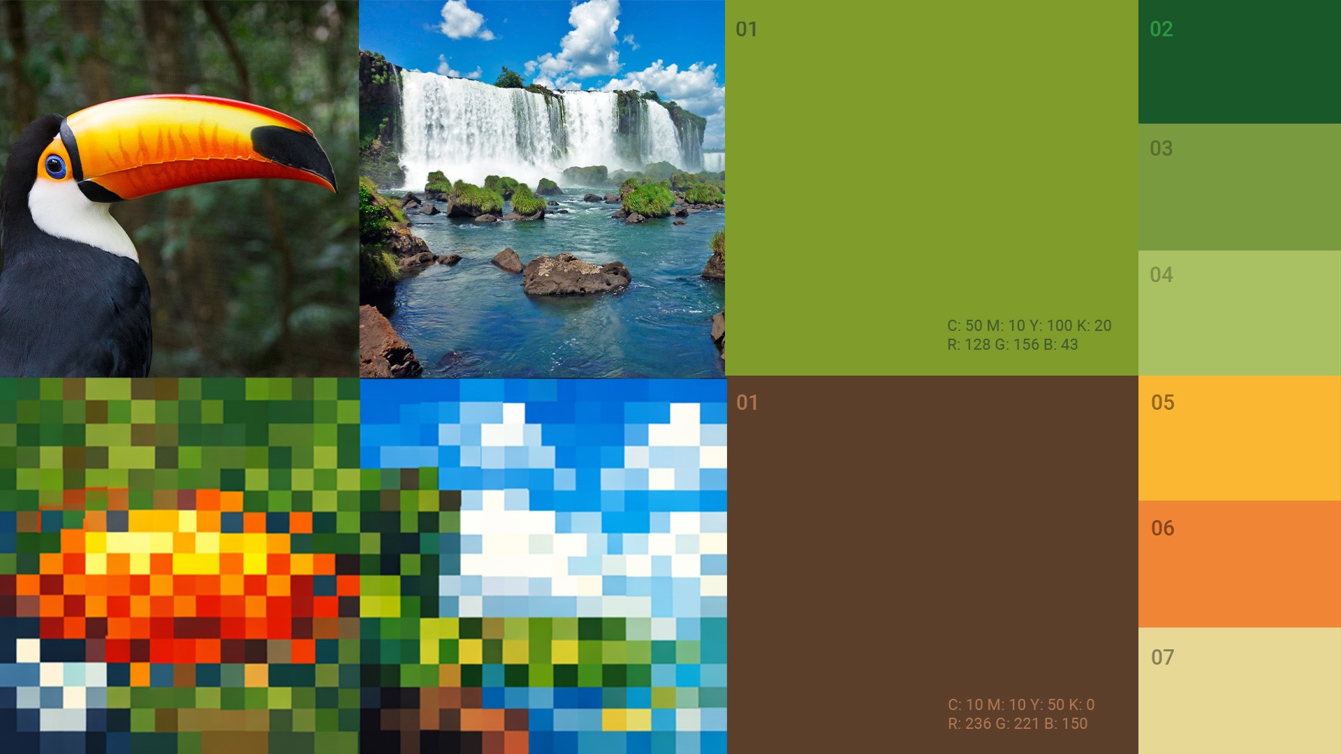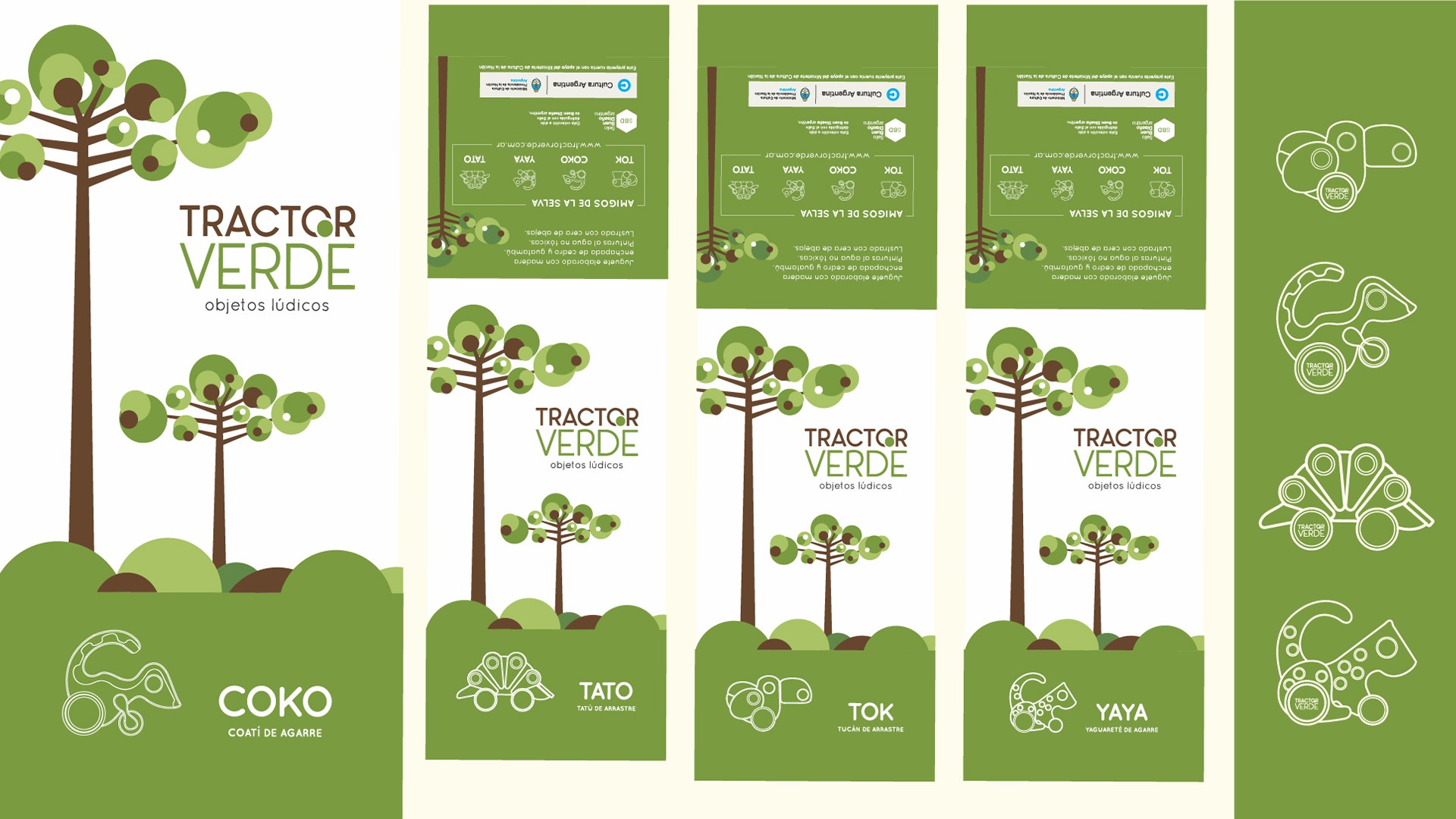 La forma rectora de la identidad es el círculo presente en el logotipo, ya que es el elemento simbólico de toda la línea de productos y representa el movimiento. El mismo, mediante operaciones formales, colores y texturas, sumado al concepto de recrear el hábitat (selva misionera), cierra las piezas utilizadas.