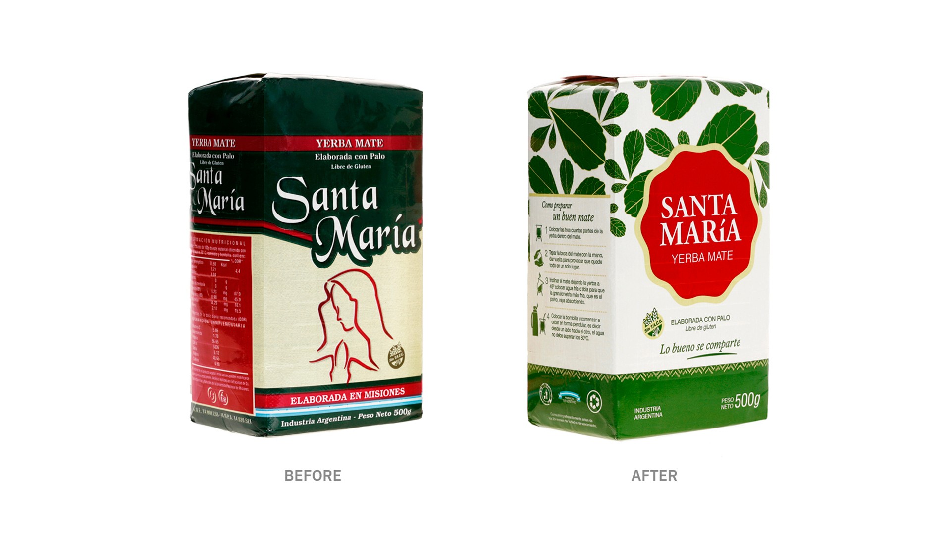Rediseño de identidad y envase. Resignificamos la historia de la marca mediante una nueva identidad, dejando atrás la referencia a la Virgen María y potenciando el valor de la cultura milenaria jesuítica de la región, donde se encuentra el establecimiento yerbatero. El re-branding valora el contexto histórico-geográfico-cultural de la Reducción Santa María.